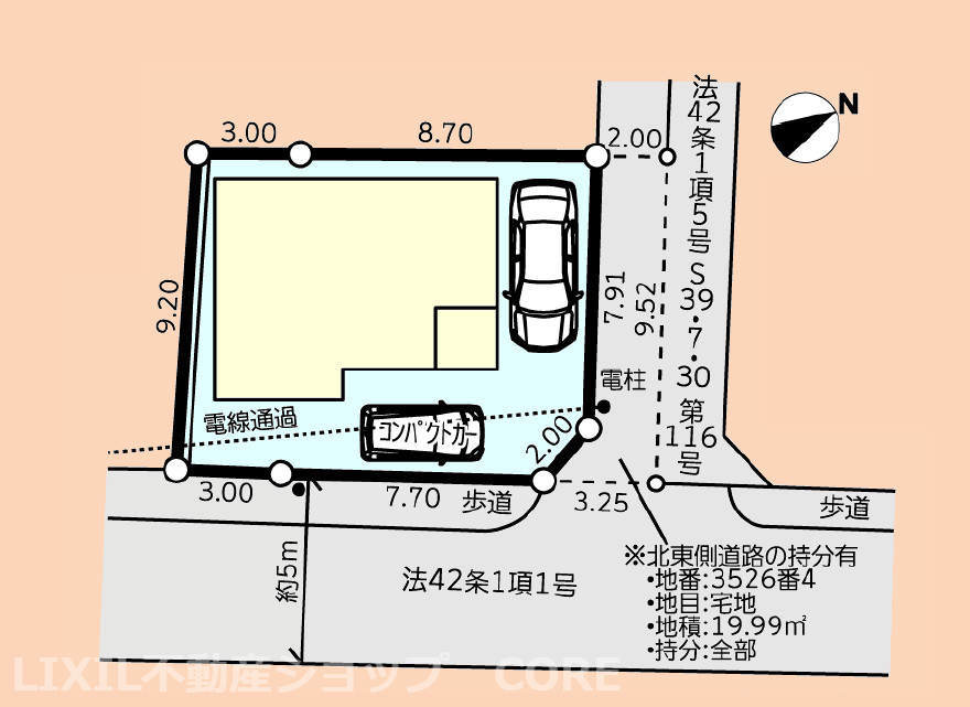 | 接道状況 | 角地 (北東側 私道4.0m) (南東側 公道5.0m) | ||