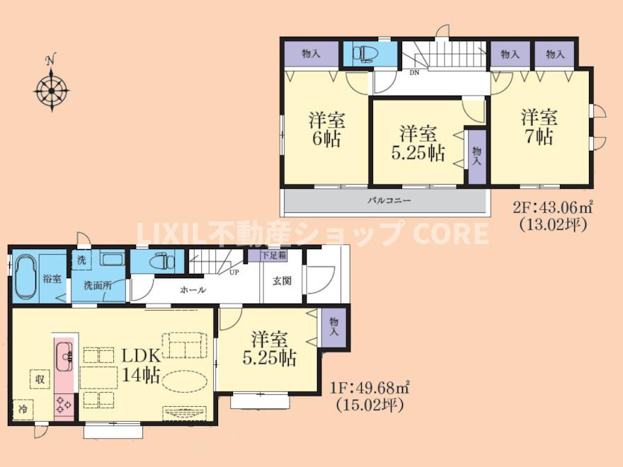 | 建物面積 | 90.25㎡ ~ 95.53㎡ | 土地面積 | 100.06㎡ ~ 104.90㎡ |