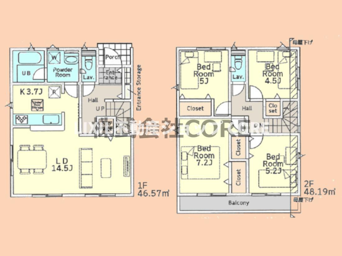| 建物面積 | 82.62㎡ ~ 89.10㎡ | 土地面積 | 107.34㎡ ~ 111.50㎡ |
