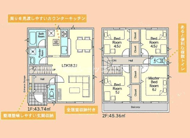LDK 18.2帖 洋室 6.0帖 洋室 4.5帖 洋室 5.0帖 洋室 4.5帖 |