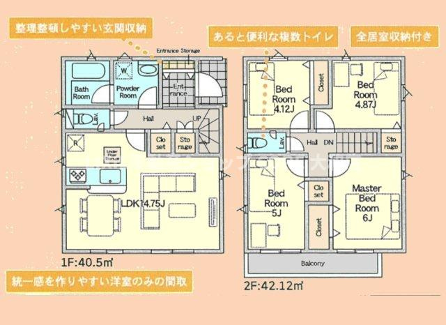 LDK 14.7帖 洋室 6.0帖 洋室 4.8帖 洋室 4.1帖 洋室 5.0帖 |