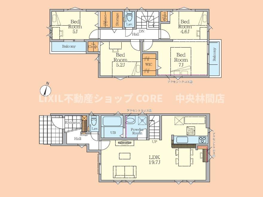 LDK 19.7帖 洋室 5.0帖 洋室 5.2帖 洋室 7.0帖 洋室 4.6帖 |