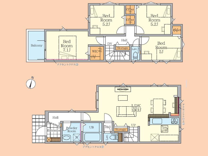 LDK 19.3帖 洋室 7.1帖 洋室 5.2帖 洋室 5.2帖 洋室 5.0帖 |
