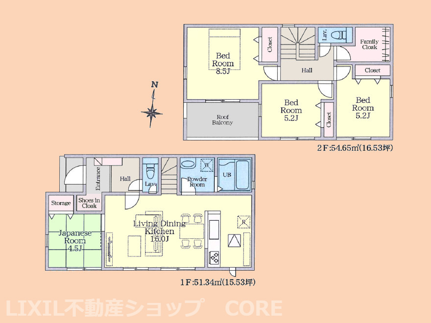 LDK 16.0帖 / 和室 4.5帖 / 洋室 8.5帖 / 洋室 5.2帖 / 洋室 5.2帖 / |