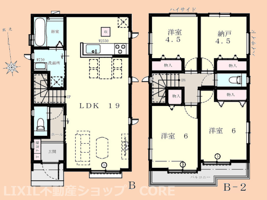 LDK 19.0帖 洋室 6.0帖 洋室 6.0帖 洋室 4.5帖 S(納戸) 4.5帖 |