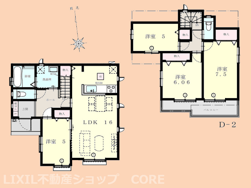 LDK 16.0帖 洋室 7.5帖 洋室 6.0帖 洋室 5.0帖 洋室 5.0帖 |