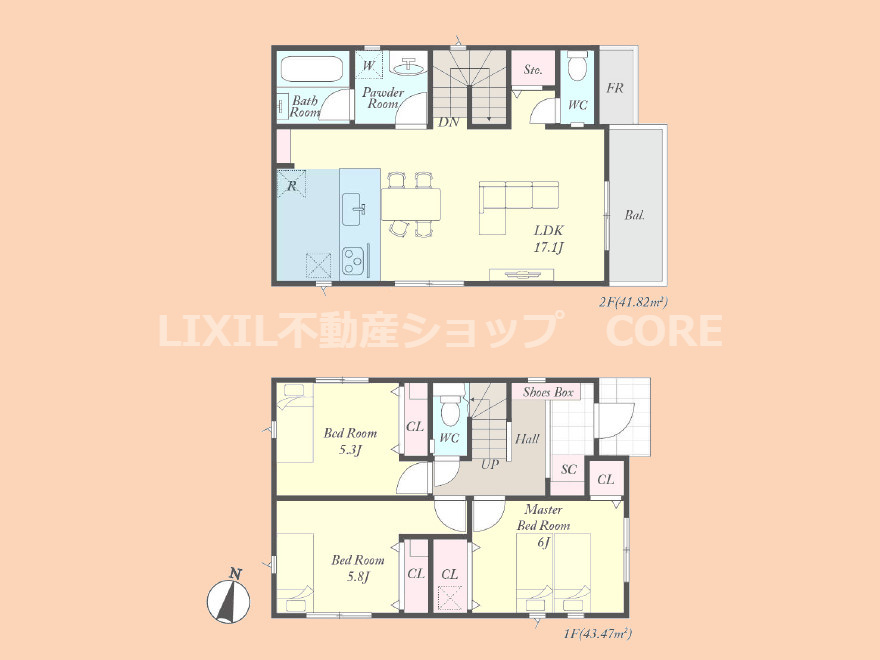LDK 17.1帖 洋室 6.0帖 洋室 5.8帖 洋室 5.3帖 |