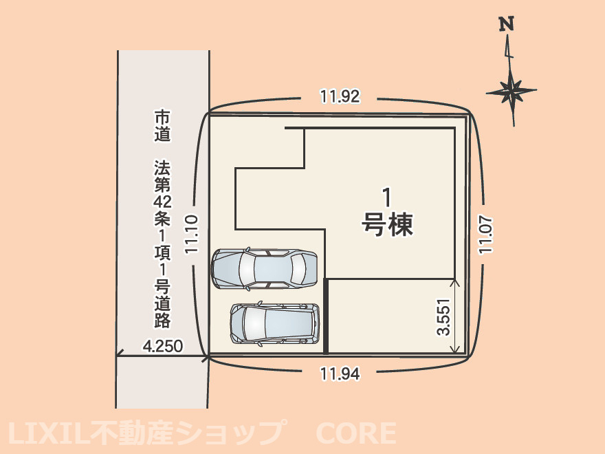 | 建物面積 | 105.19㎡ ~ 105.47㎡ | 土地面積 | 107.00㎡ ~ 107.91㎡ |