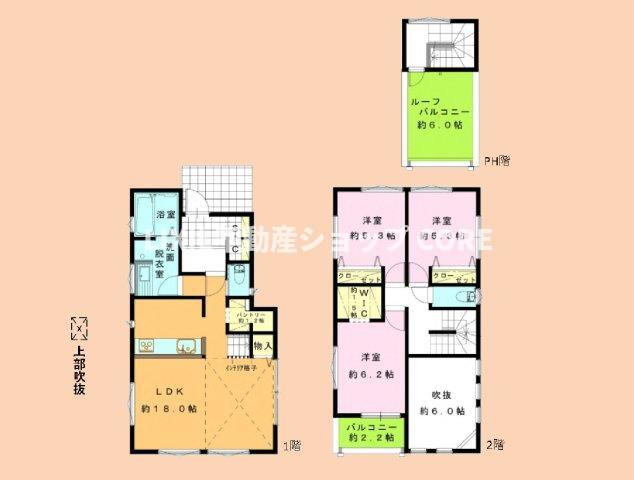 LDK 18.0帖 / 洋室 6.2帖 / 洋室 5.3帖 / 洋室 5.3帖 / |