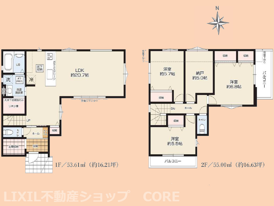 LDK 20.7帖 / 洋室 6.8帖 / 洋室 5.7帖 / 洋室 5.5帖 / S(納戸) 5.0帖 / |