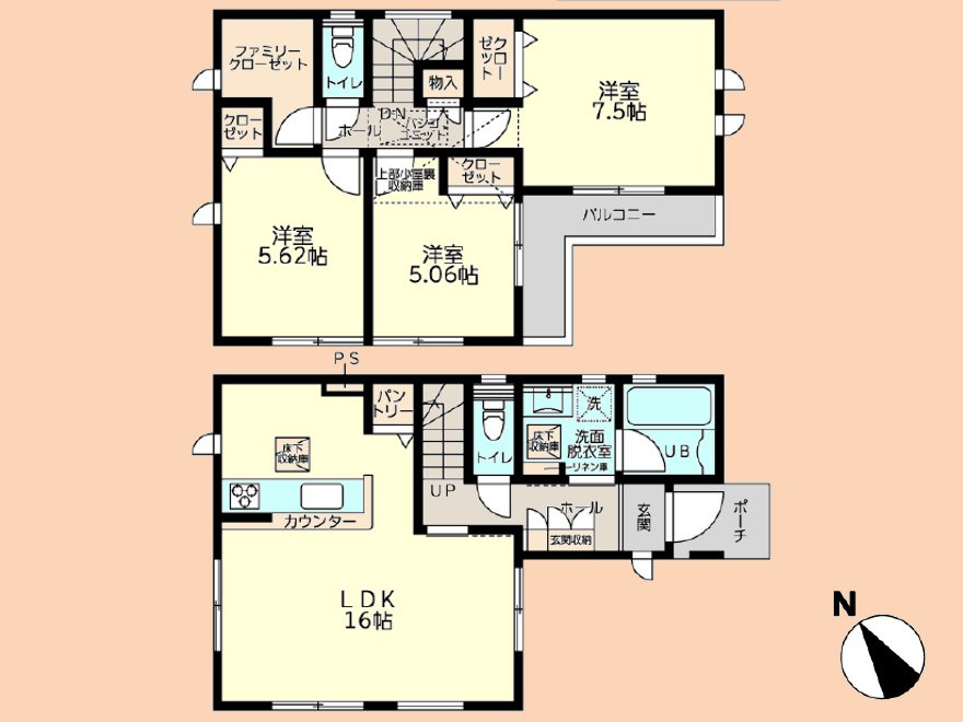 LDK 16.0帖 洋室 5.6帖 洋室 5.0帖 洋室 7.5帖 |