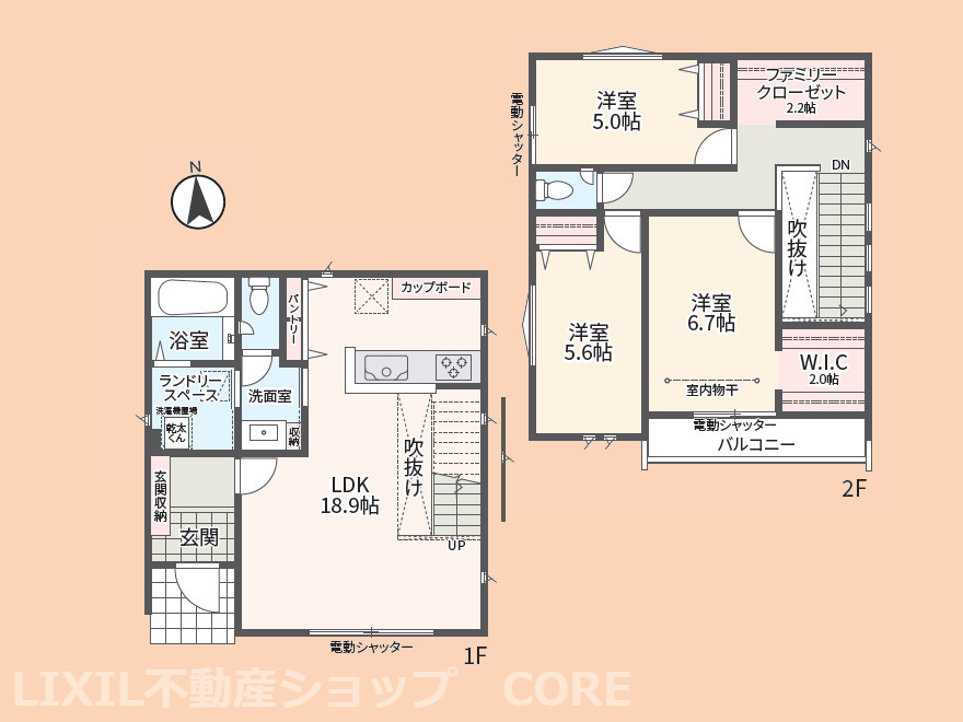 LDK 18.9帖 洋室 6.7帖 洋室 5.6帖 洋室 5.0帖 |