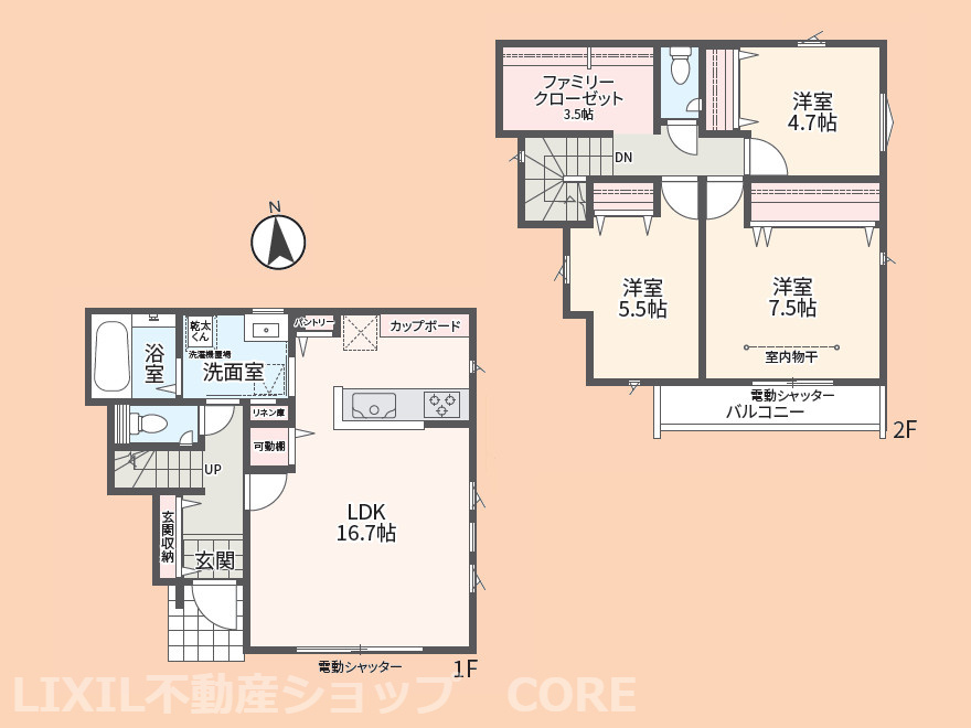 LDK 16.7帖 洋室 7.5帖 洋室 5.5帖 洋室 4.7帖 |