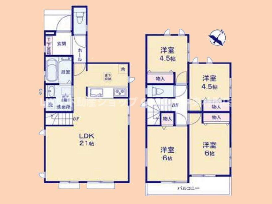 LDK 21.0帖 洋室 6.0帖 洋室 6.0帖 洋室 4.5帖 洋室 4.5帖 |