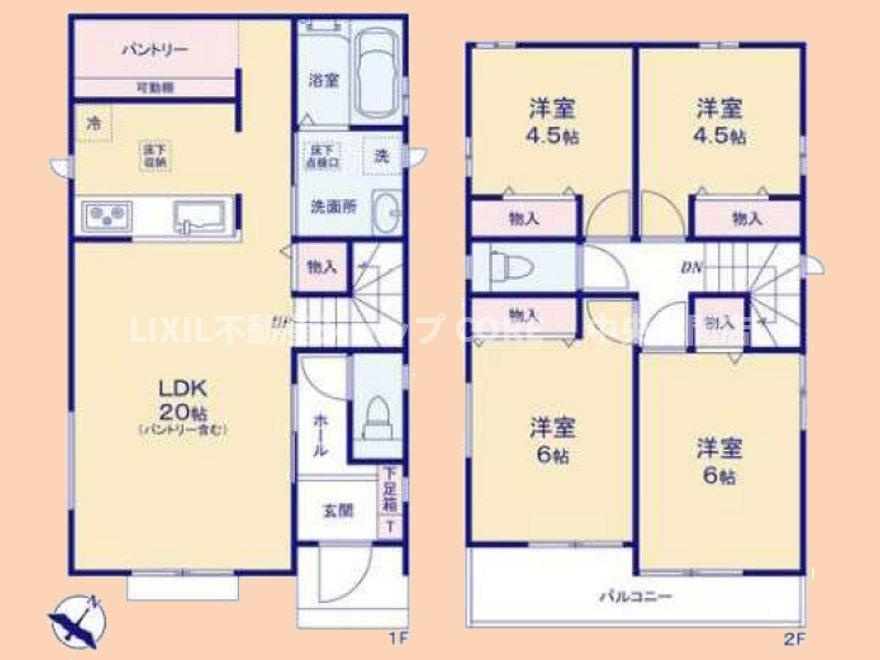 LDK 20.0帖 洋室 4.5帖 洋室 4.5帖 洋室 6.0帖 洋室 6.0帖 |