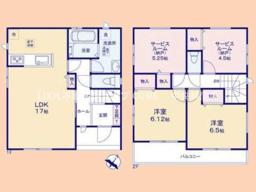 LDK 17.0帖 洋室 6.5帖 洋室 6.1帖 洋室 5.2帖 S(納戸) 4.5帖 |