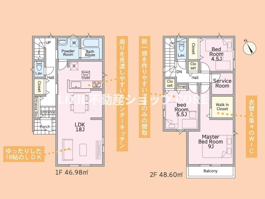 | 建物面積 | 93.95㎡・99.63㎡ | 土地面積 | 94.52㎡・94.88㎡ |