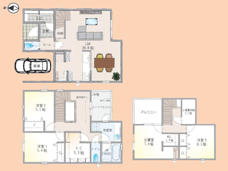 LDK 20.0帖 / 洋室 7.4帖 / 洋室 6.1帖 / 洋室 5.4帖 / 洋室 5.1帖 / |