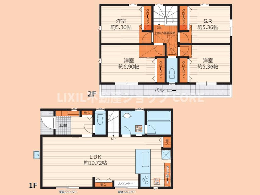 LDK 19.7帖 / 洋室 6.9帖 / 洋室 5.3帖 / 洋室 5.3帖 / S(納戸) 5.3帖 / |