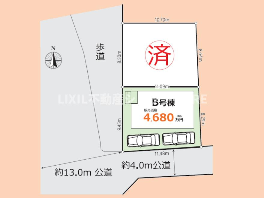 | 建物面積 | 96.88㎡ ~ 109.30㎡ | 土地面積 | 150.28㎡ ~ 156.50㎡ |