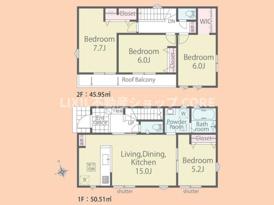 LDK 15.0帖 / 洋室 7.7帖 / 洋室 6.0帖 / 洋室 6.0帖 / 洋室 5.2帖 / |