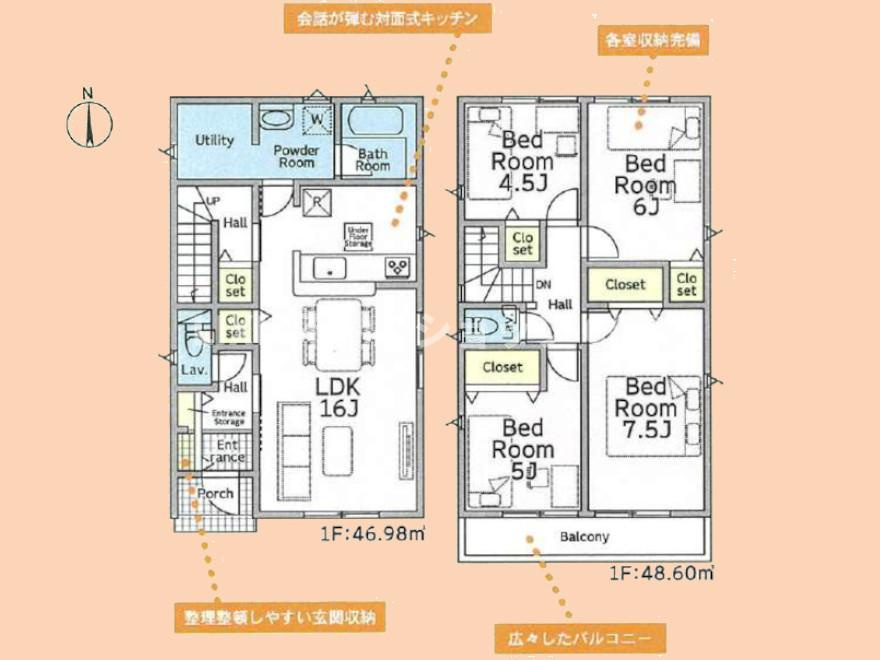 | 建物面積 | 90.72㎡・97.20㎡ | 土地面積 | 120.54㎡・120.55㎡ |