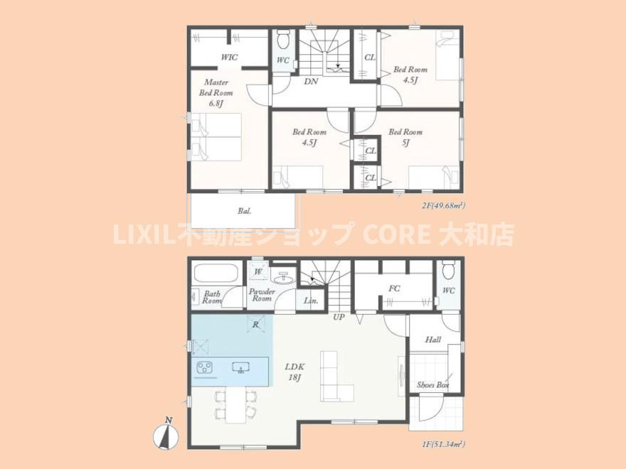 LDK 18.0帖 / 洋室 6.8帖 / 洋室 4.5帖 / 洋室 5.0帖 / 洋室 4.5帖 / |