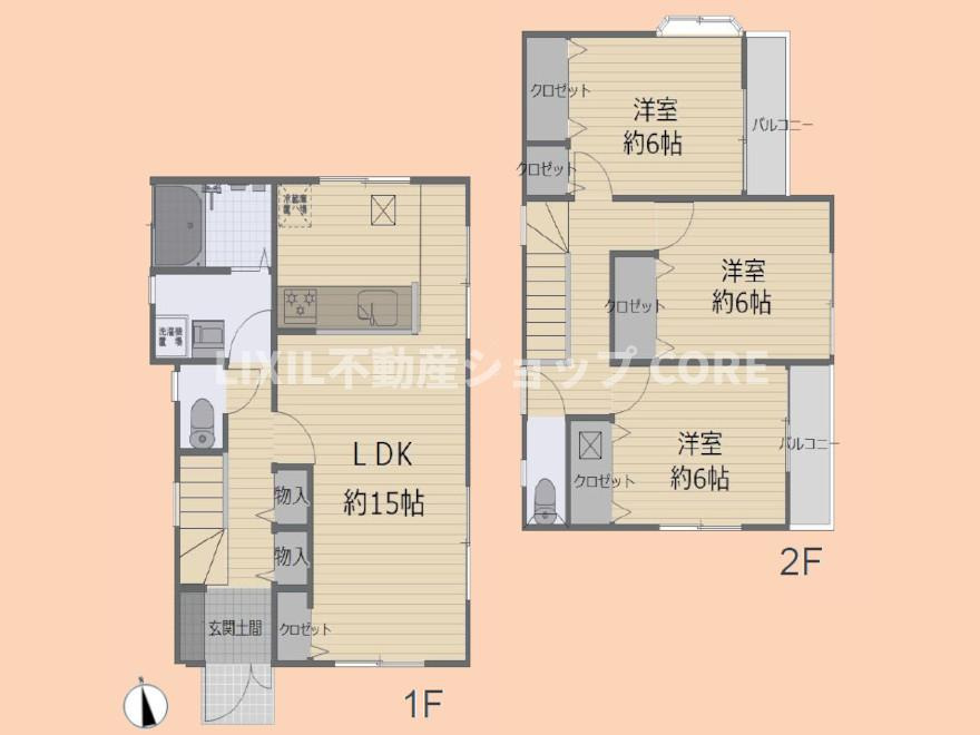 LDK 15.0帖 / 洋室 6.0帖 / 洋室 6.0帖 / 洋室 6.0帖 / |