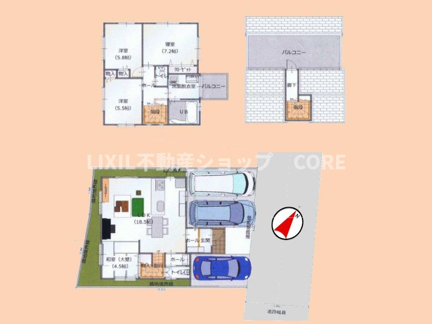 LDK 18.5帖 / 和室 4.5帖 / 洋室 5.8帖 / 洋室 5.5帖 / 洋室 7.2帖 / |
