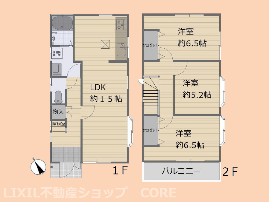 LDK 15.0帖 / 洋室 6.5帖 / 洋室 6.5帖 / 洋室 5.2帖 / |