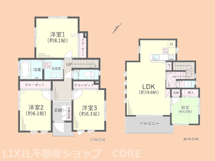 LDK 19.6帖 / 和室 4.5帖 / 洋室 8.1帖 / 洋室 6.1帖 / 洋室 6.1帖 / |