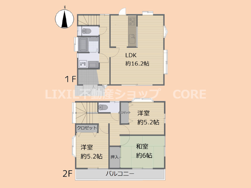 LDK 16.2帖 / 洋室 5.2帖 / 洋室 5.2帖 / 和室 6.0帖 / |