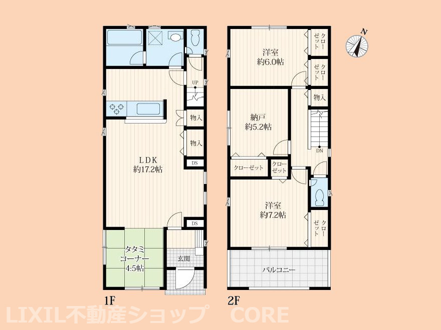LDK 17.2帖 / 洋室 7.2帖 / 洋室 6.0帖 / 和室 4.5帖 / S(納戸) 5.2帖 / |