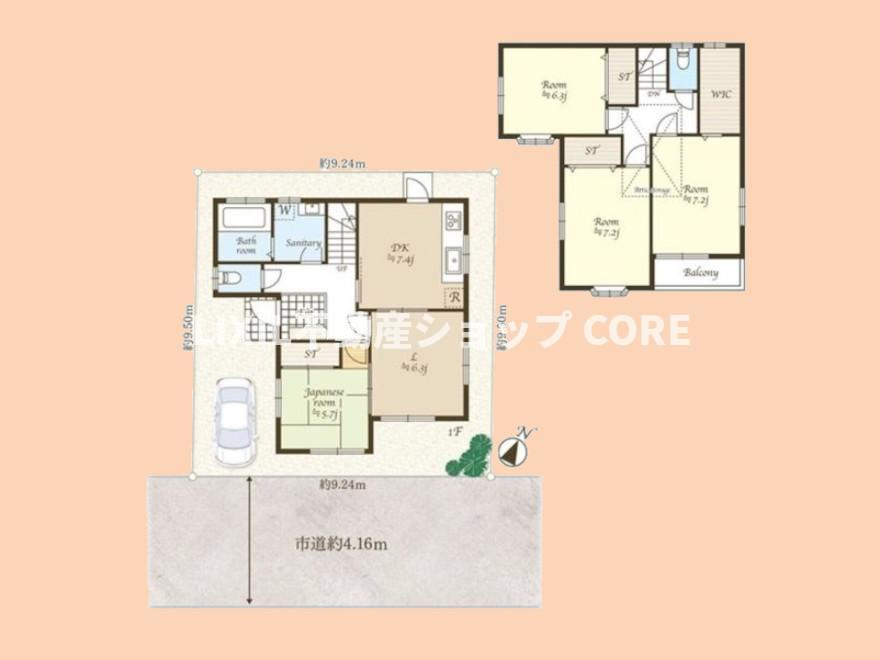 | 建物面積 | 93.15㎡ | 土地面積 | 238.85㎡ |