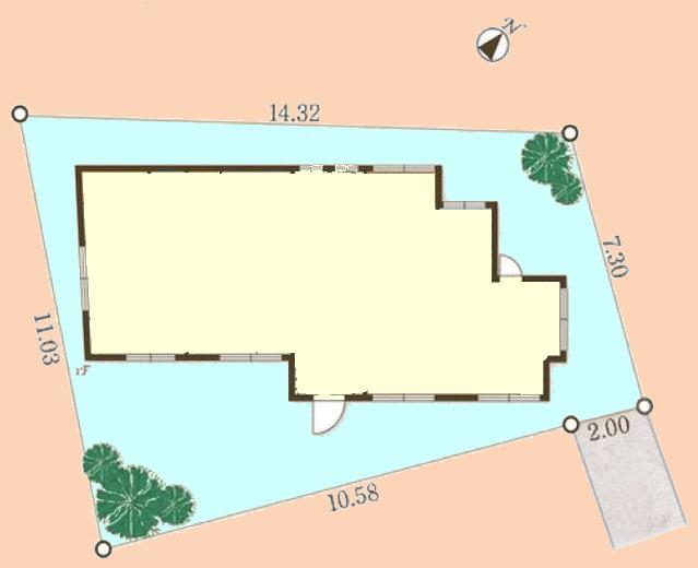 | 接道状況 | 一方 (東側 私道4.0m 間口2.0m) | ||